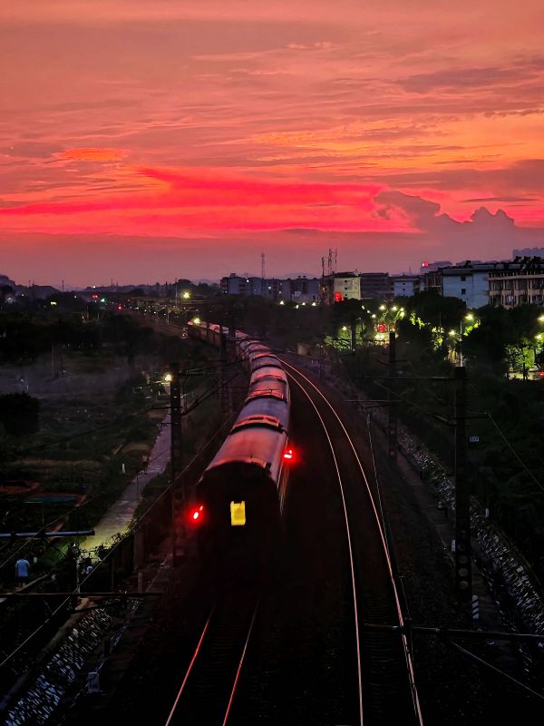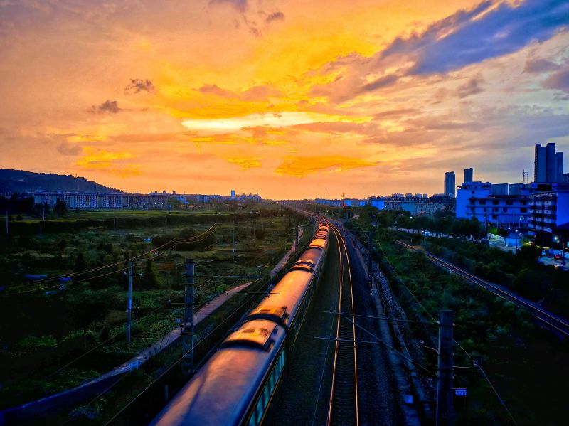 江西分宜:落日染云霞 铁轨鎏金映小城
