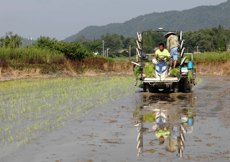 江西分宜:晚稻机插忙 稻田披绿装