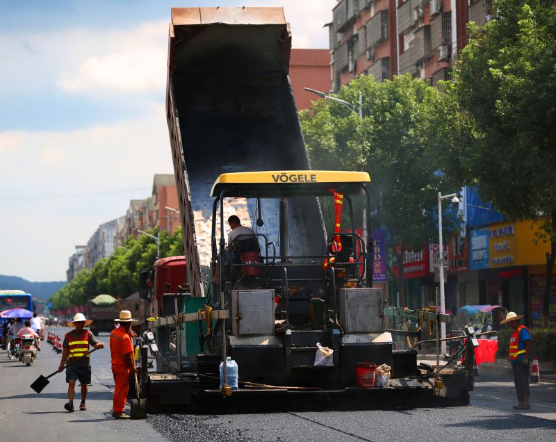 万载筑路工人热火朝天忙筑路