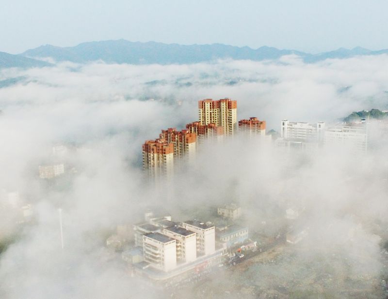 平流雾笼罩,高层建筑入仙境