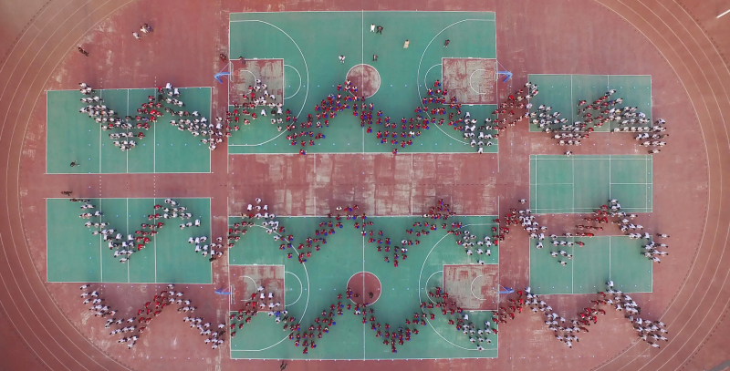 航拍800多学生操场耍篮球 大课间活动有声有色