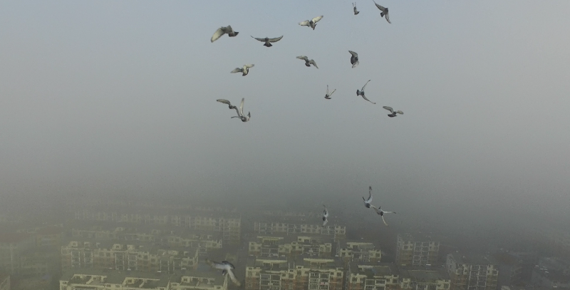 宜春万载无人机穿越鸟群看晨雾