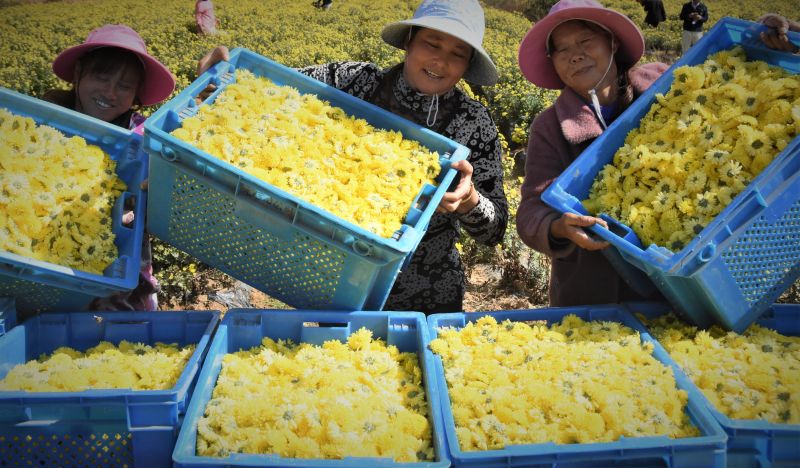 江西鄱阳:元宝山千亩秋菊采摘忙