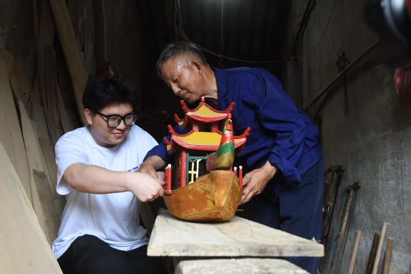 江西鄱阳:船模制作工匠再现风帆古船英姿