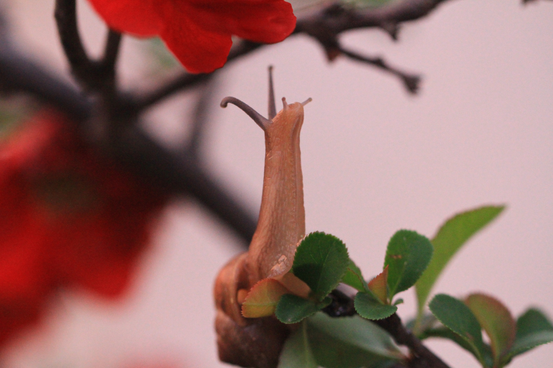 泰和:小区海棠花中奋进的蜗牛