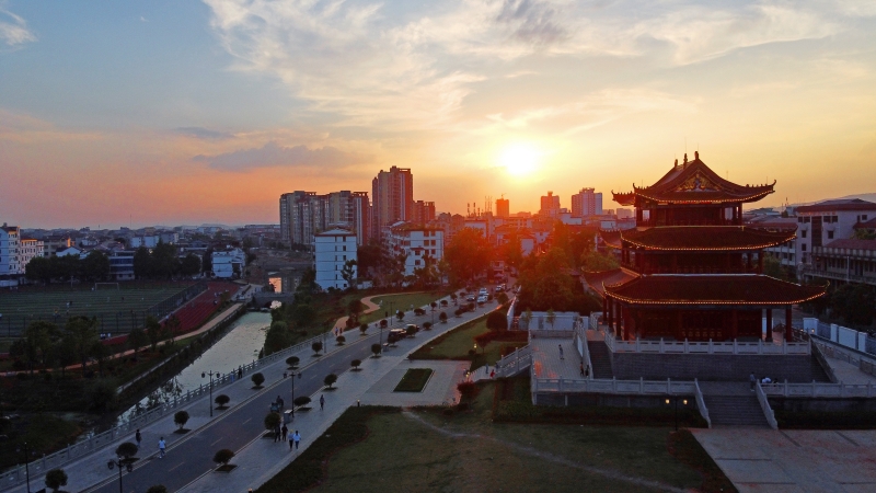 江西泰和:快阁晚晴醉游人