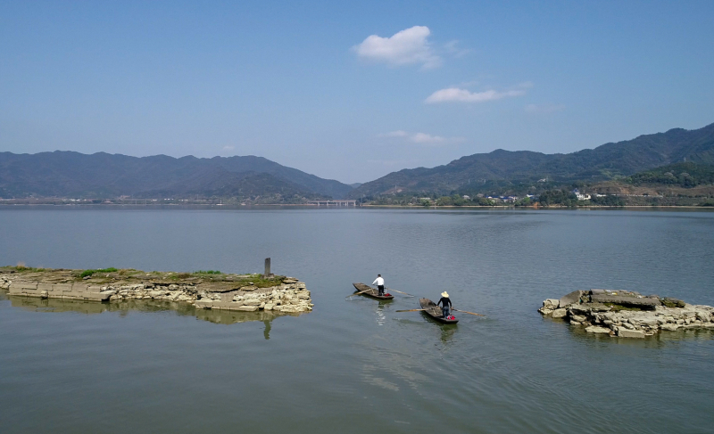 新余仙女湖:万年桥初出水面