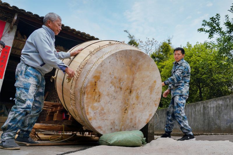 江西新余:父子联手 传承非遗制鼓技艺