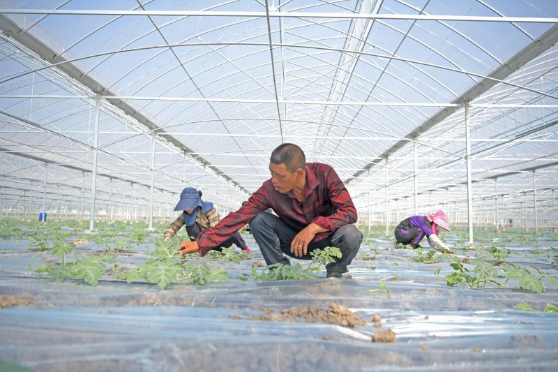 江西铅山:大棚西瓜田间管理忙