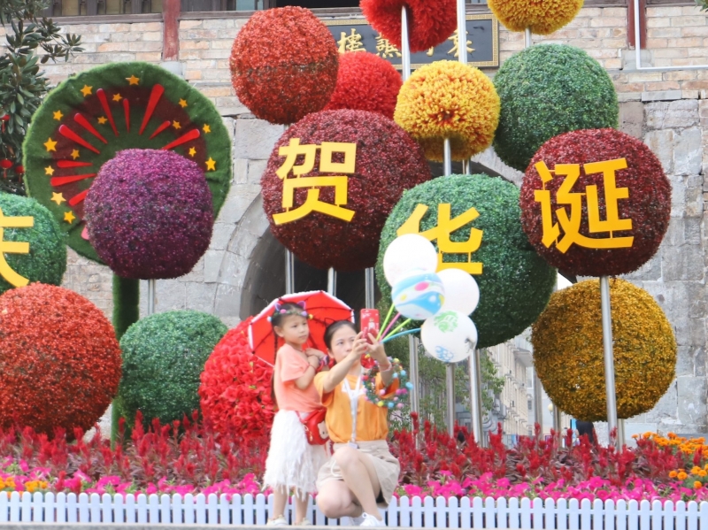 江西宜春:国庆“江花”红似火 袁州大桥换新颜