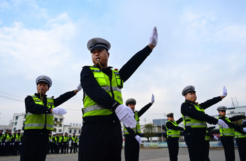 江西万载:交警展技能 岗位大练兵