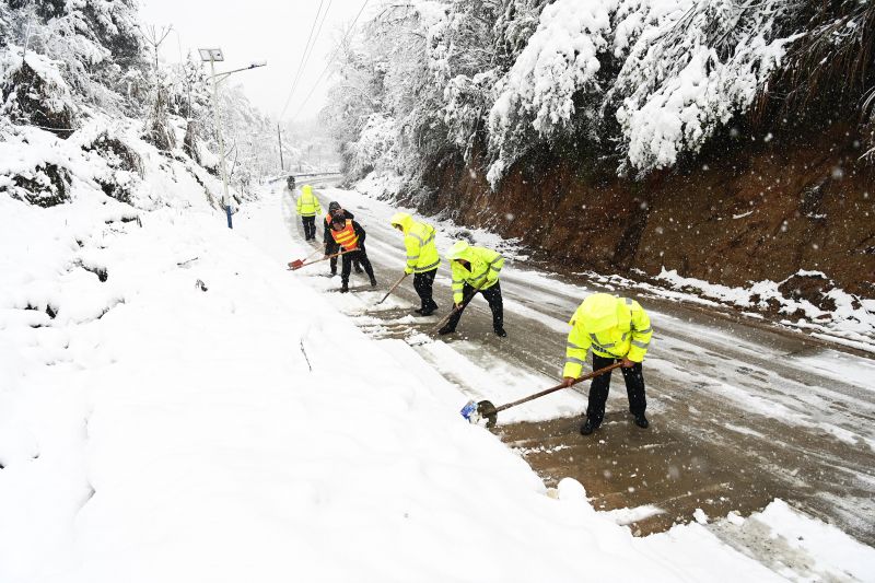 江西万载:交警坚守一线全力应对降雪天气