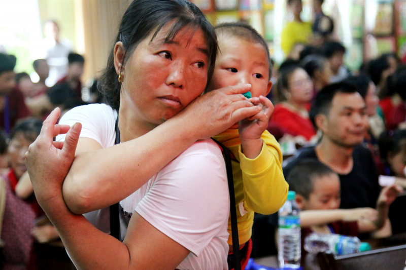 江西遂川:倒背喂水小孩子嘴里解渴画面十分温馨