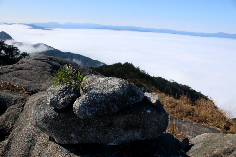 江西遂川:海拔1742米悬崖峭壁上生长坚强树造型独特