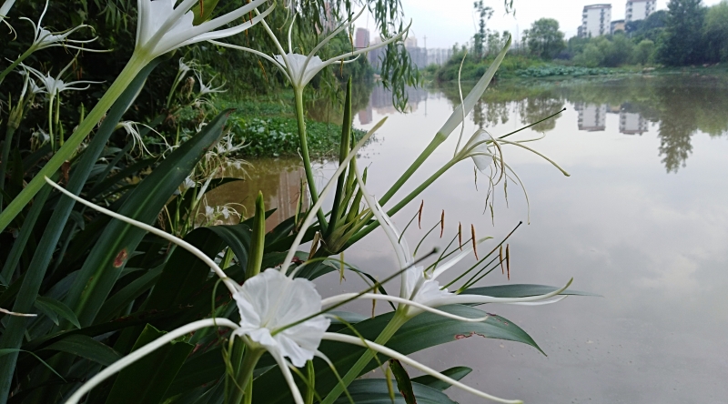 江西吉安:庐陵赣江国家湿地公园蜘蛛兰盛开洁白如玉