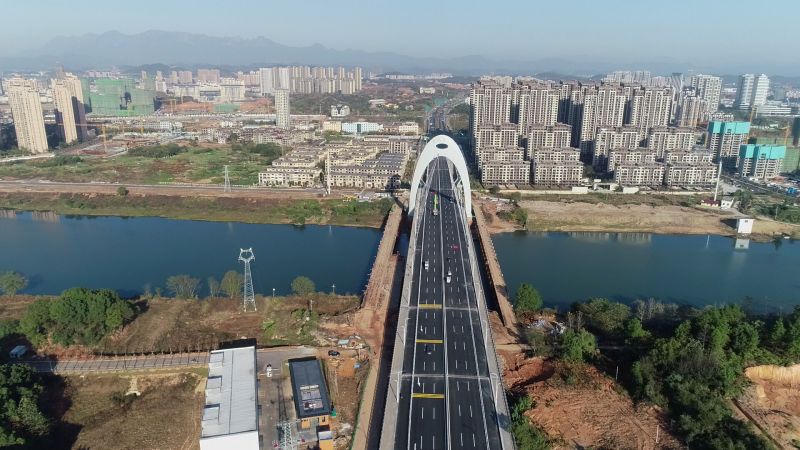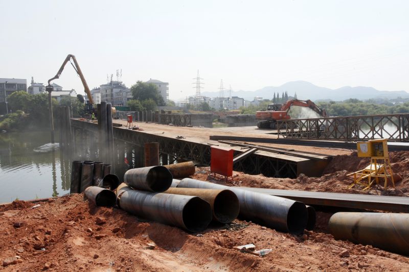 江西上饶:灵溪大桥重建 工程大梁吊装到位
