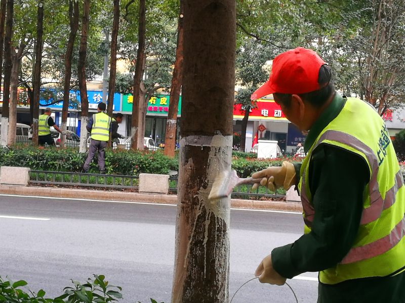 江西上饶:园林工人为树木过冬穿“防虫衣”