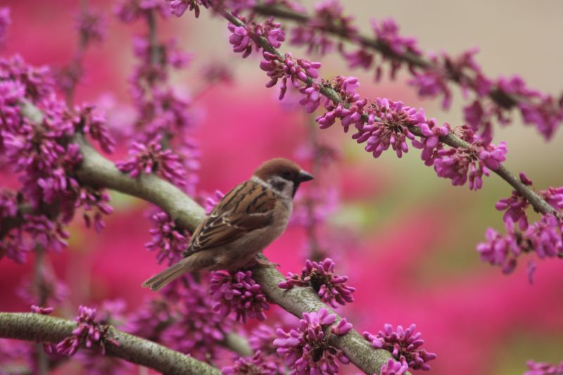 江西安福: 紫荆绽放引“客”来 鸟儿翻飞落花间