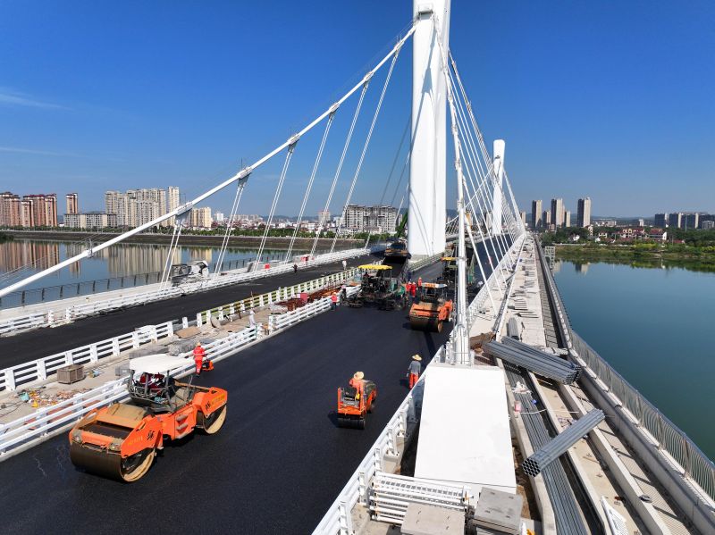 江西泰和:澄江大桥摊铺施工忙
