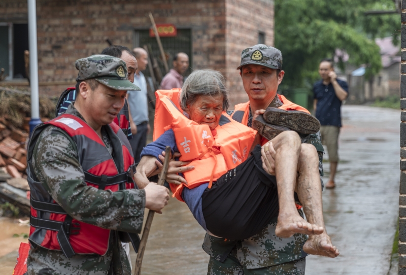 江西泰和:遭暴雨侵袭 紧急转移被困群众