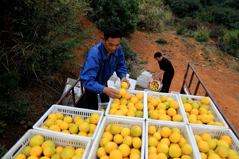 江西莲花:蜜柚喜丰收 村民采摘忙