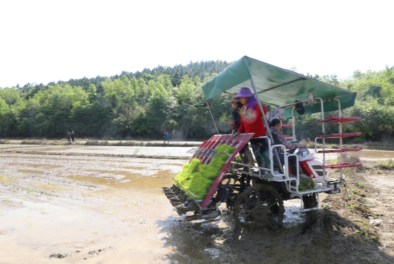 江西莲花:插秧机田间忙