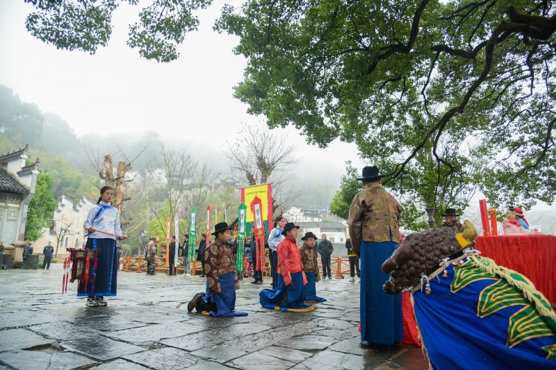 婺源篁岭上演打麻糍、跳傩舞、祭山神等民俗大戏