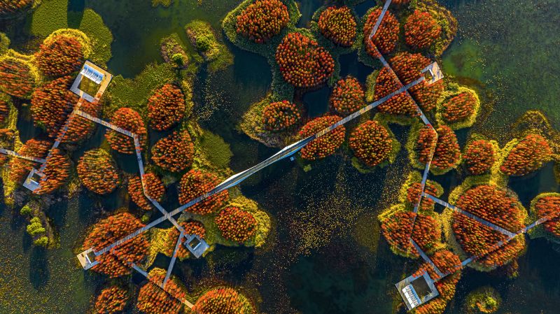 江西南昌:鱼尾洲湿地公园层林尽染 冬景如画