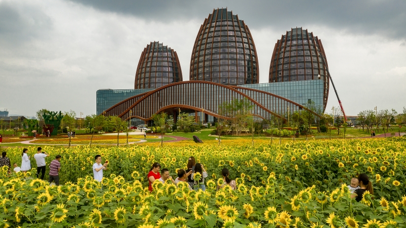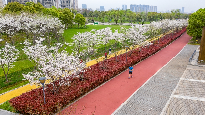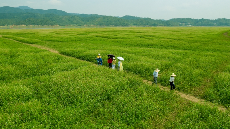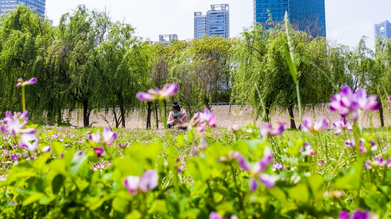 江西南昌:红谷滩新区赣江边成片紫云英盛开