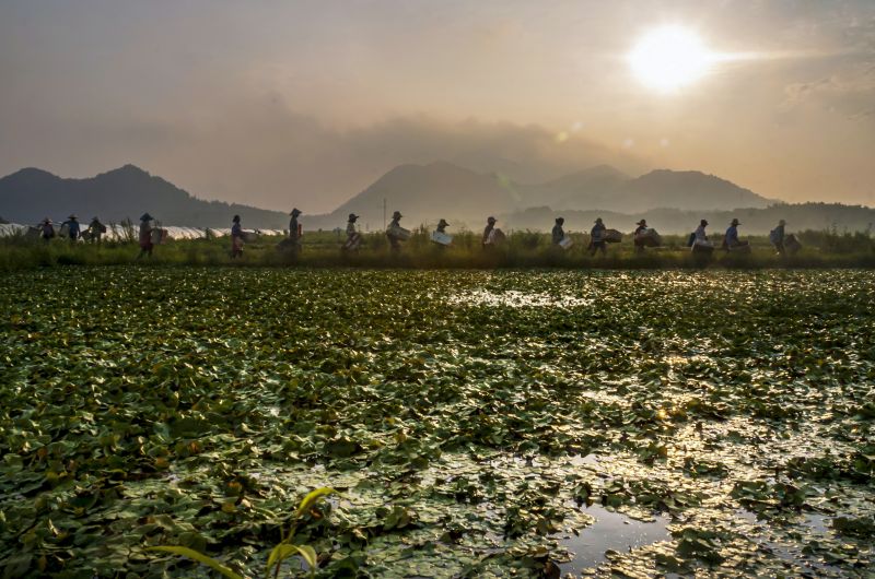 江西分宜:菱角成熟季 农民采收忙