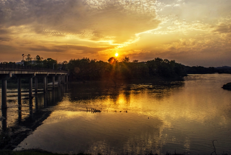 江西分宜:杨溪河畔晚霞诱人