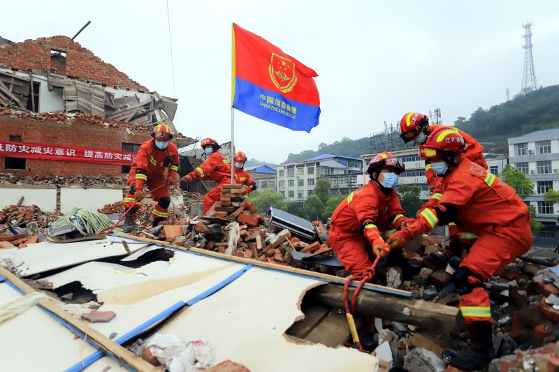 江西湖口:开展防灾救援模拟演练