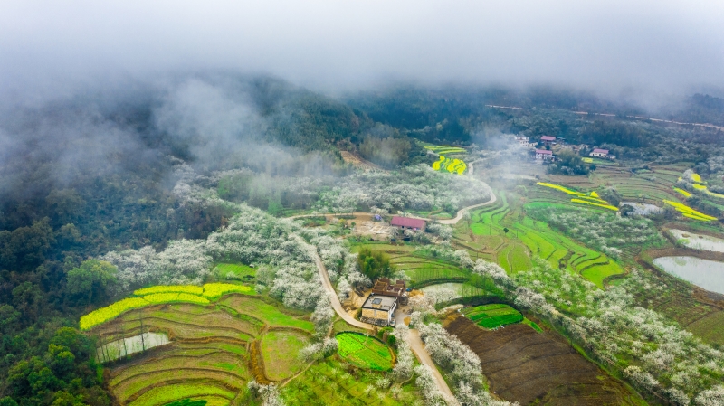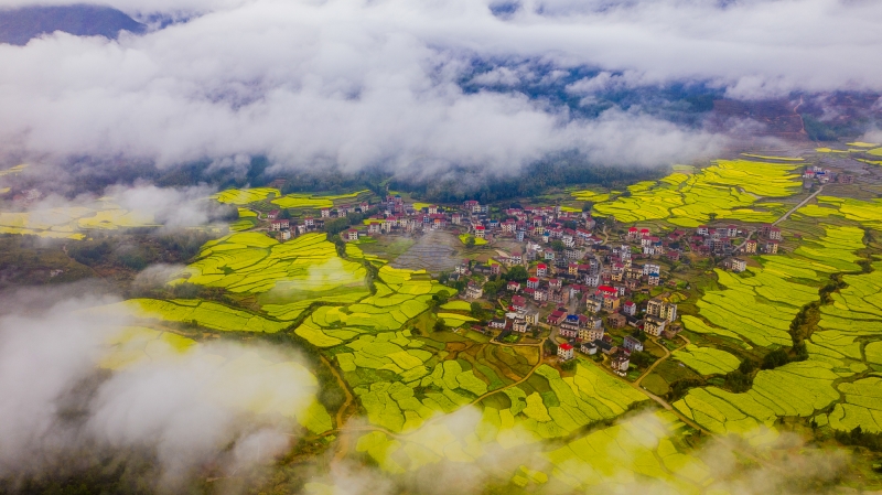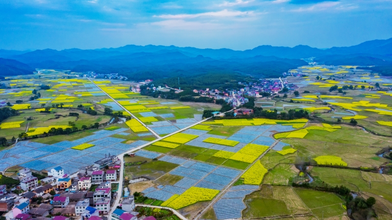 俯瞰安福洋溪:万亩油菜花海 春日风光尽收眼底