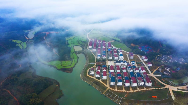 航拍蒋沙:移民新村如诗如画的田园风貌