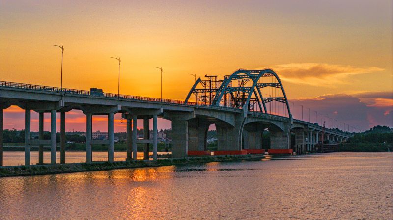 【视频】江西峡江:晚霞映进度 大桥改建忙
