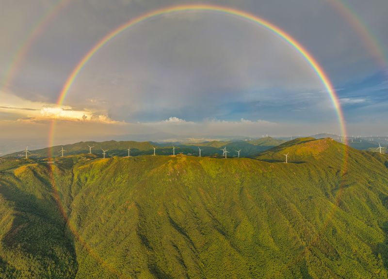 【视频】江西丰城:玉华山风光引客 风机旁现双彩虹