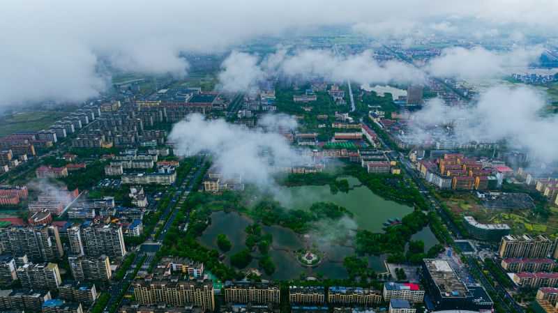【视频】江西峡江:雨后城区 云雾缭绕