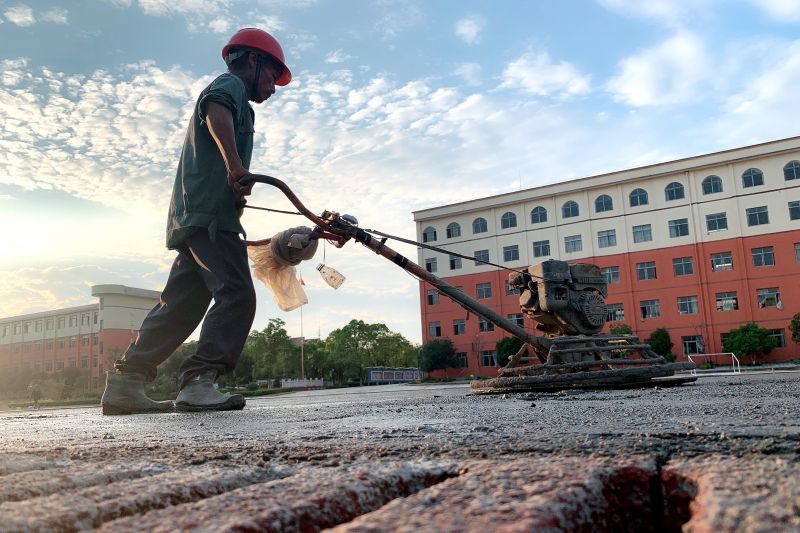 江西峡江:足球场施工现场忙