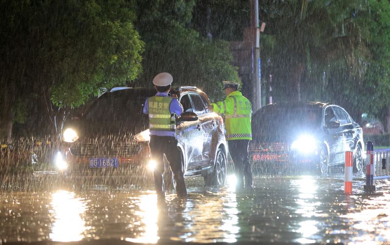 江西瑞昌:暴雨来袭 交警坚守保畅通
