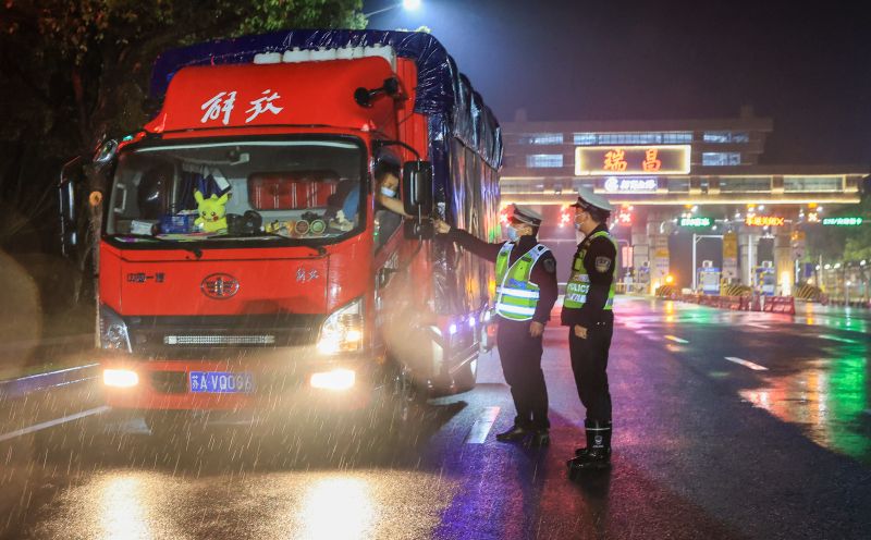 江西瑞昌:雨夜值守 筑牢交通卡口疫情防线