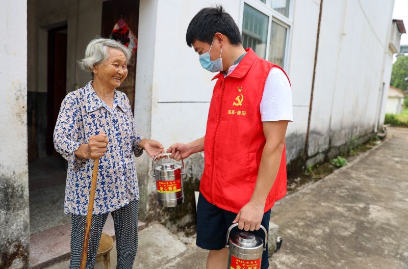 江西瑞昌:党员志愿者为留守老人送餐上门