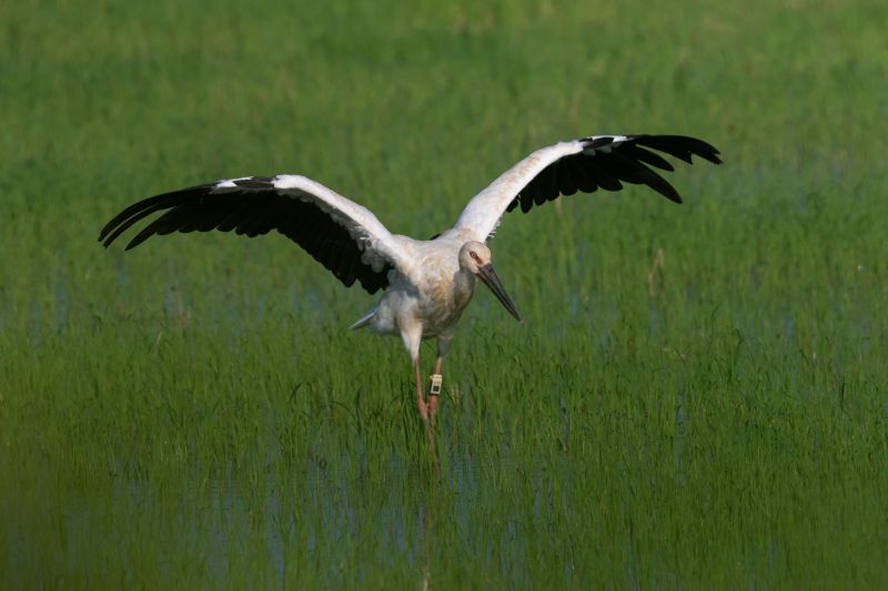 江西瑞昌:盛夏首次发现东方白鹳 候鸟变“留鸟”