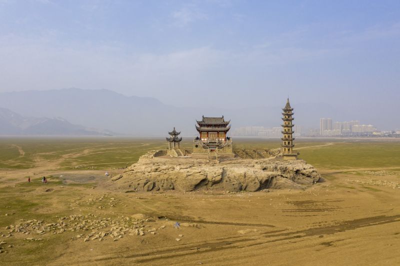 江西九江:鄱阳湖落星墩较往年推迟两个多月露出水面