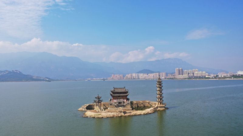 航拍瑞昌东垅水库岛屿星罗棋布 湖水相映成画