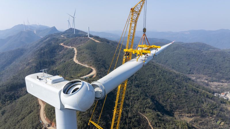 江西瑞昌:吊装国内单机容量最大山地风电机组