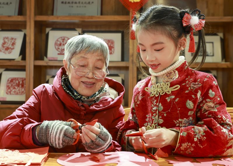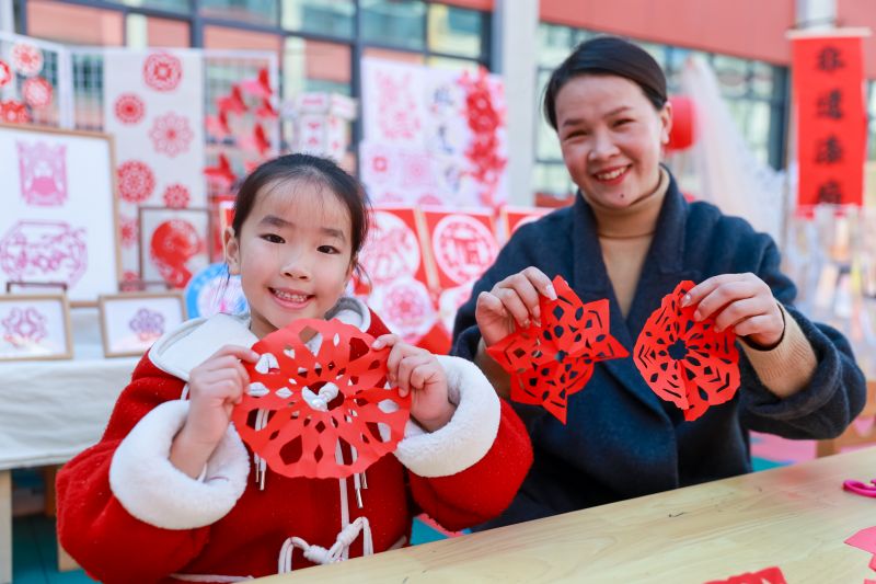 江西瑞昌:萌娃学剪纸 非遗迎新春