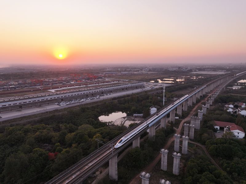 江西南昌:夕阳西下 高铁疾驰