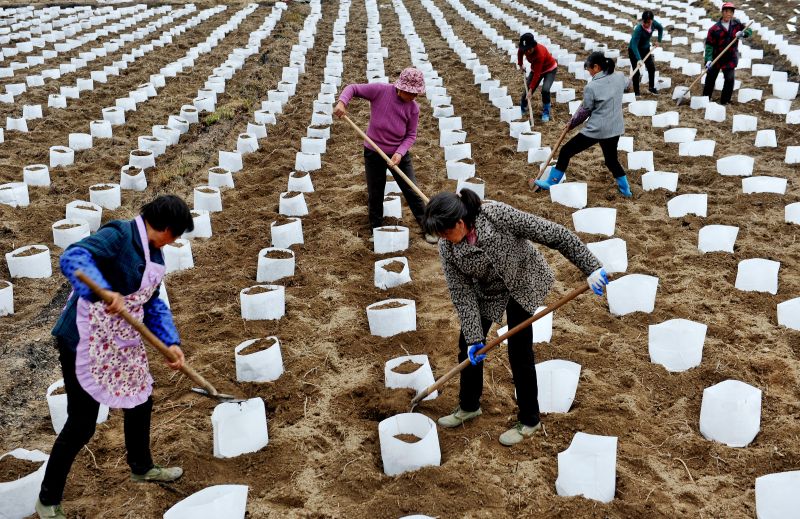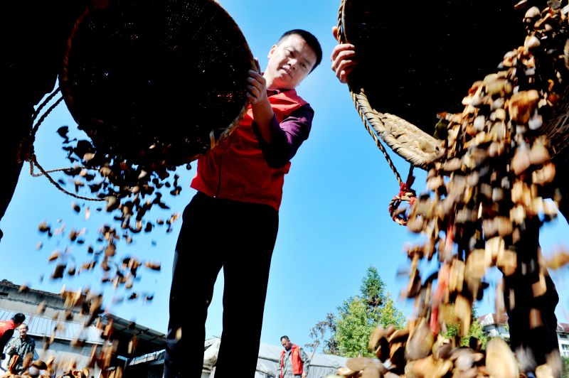 江西婺源:大妈“帮帮工” 门口忙冬种