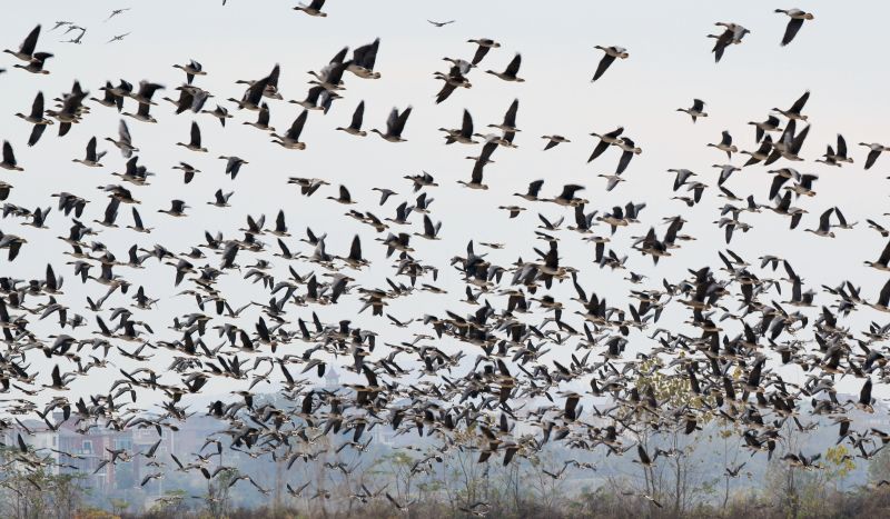 江西鄱阳:农田变“食堂” 候鸟吃“大餐”