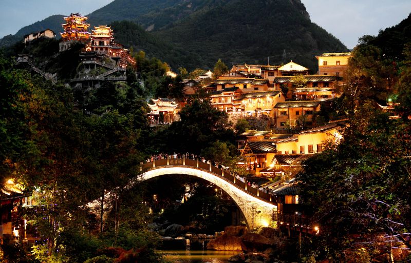 江西上饶:崖上“民俗”夜色美